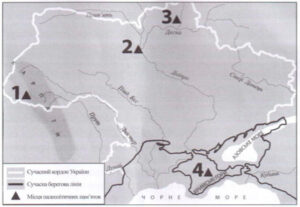 Тест з теми 1 -2 Ласкаво просимо до Тест з теми 1 -2 1. Які історичні джерела створюють найбільш повну картину господарського життя людей часів кам’яного віку? А) писемні Б) речові В) етнографічні Г) усні Немає 2. Галузь історичної науки, що вивчає речові (матеріальні) пам’ятки шляхом розкопок і лабораторних досліджень та реконструює за ними давню історію суспільства, називається А) геральдика Б) топоніміка В) історіографія Г) археологія Немає 3. Що таке цивілізація? А) будь-яка група людей, які проживають на одній території незалежно від мови й культури Б) людська спільнота, яка впродовж певного періоду часу має стійкі особливі риси в соціально-політичній організації, економіці та культурі. Сукупність матеріальних і духовних досягнень суспільства В) політична організація суспільства на чолі з вождем Г) система правил і законів, що регулюють відносини між людьми Немає 4. В основу археологічної періодизації стародавньої історії України покладено А) заняття первісної людини Б) природно-кліматичні умови В) антропологічний тип людини Г) матеріал виготовлення знарядь праці Немає 5. «Археологічна культура» – це А) комплекс подібних між собою за низкою ознак археологічних пам’яток, поширених на певній території в межах певного історичного часу Б) шар ґрунту на місці давніх поселень, у якому під час розкопок археологами виявлено предмети матеріальної культури, сліди господарювання людини В) сукупність матеріальних цінностей, створених певною культурою відповідно до рівня розвитку окремого народу чи окремого регіону Г) система археологічної періодизації культурно-історичного поступу, що послідовно фіксує найважливіші матеріальні зрушення в розвитку людства Немає 6. Залюднення території України розпочалося в період А) палеоліту Б) мезоліту В) неоліту Г) енеоліту Немає 7. Які заняття людей були основою ведення привласнюючого господарства? А) землеробство, скотарство, рибальство Б) мисливство, збиральництво, рибальство В) збиральництво, тваринництво, рибальство Г) землеробство, збиральництво, мисливство Немає 8. На якому етапі розвитку первісного суспільства на українських землях уперше з’являються наскельні малюнки, різьблені орнаменти на виробах, прикраси? А) палеоліту Б) мезоліту В) неоліту Г) енеоліту Немає 9. Що спільного в господарській діяльності людей періоду палеоліту та мезоліту? А) поглиблення першого великого суспільного поділу праці Б) удосконалення привласнювальних форм господарювання В) розвиток різних форм землеробства й скотарства Г) формування кочового господарства Немає 10. Первісна людина з’явилася на території сучасної України близько А) 2 млн років тому Б) 1 млн років тому В) 500 тис. років тому Г) 250 тис. років тому Немає 11. На картосхемі позначено місця стоянок первісних людей доби палеоліту. Якою цифрою на картосхемі позначено стоянку, де археологи знайшли пам’ятку, зображену на фото? А) 1 Б) 2 В) 3 Г) 4 Немає 12. Що стало одним із наслідків винайдення первісною людиною лука та стріли? А) перехід людини до осілого способу життя Б) криза та занепад рибальства й збиральництва В) суттєве зростання продуктивності праці мисливців Г) утвердження відтворюючих форм господарювання Немає 13. Зображені на фото мисливські знаряддя винайдено людиною в епоху А) палеоліт Б) мезоліт В) неоліт Г) енеоліт Немає 14. У яку історико-археологіч